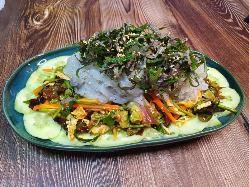 실치회는 한 마리씩 먹는 것이 아니라, 한 움큼씩 집어 초고추장 양념에 각종 채소와 함께 무쳐 먹는 것이 일반적입니다 . 오이, 당근, 깻잎, 양파 등을 넣고 버무리면 실치의 담백함과 채소의 아삭함이 조화를 이룹니다. 김에 싸서 먹으면 맛이 더욱 좋습니다 . 실치 자체는 강한 맛이 없어 양념 맛에 기대는 편이지만, 그 부드럽고 미끄덩한 식감은 봄에만 느낄 수 있는 특별한 경험입니다 .